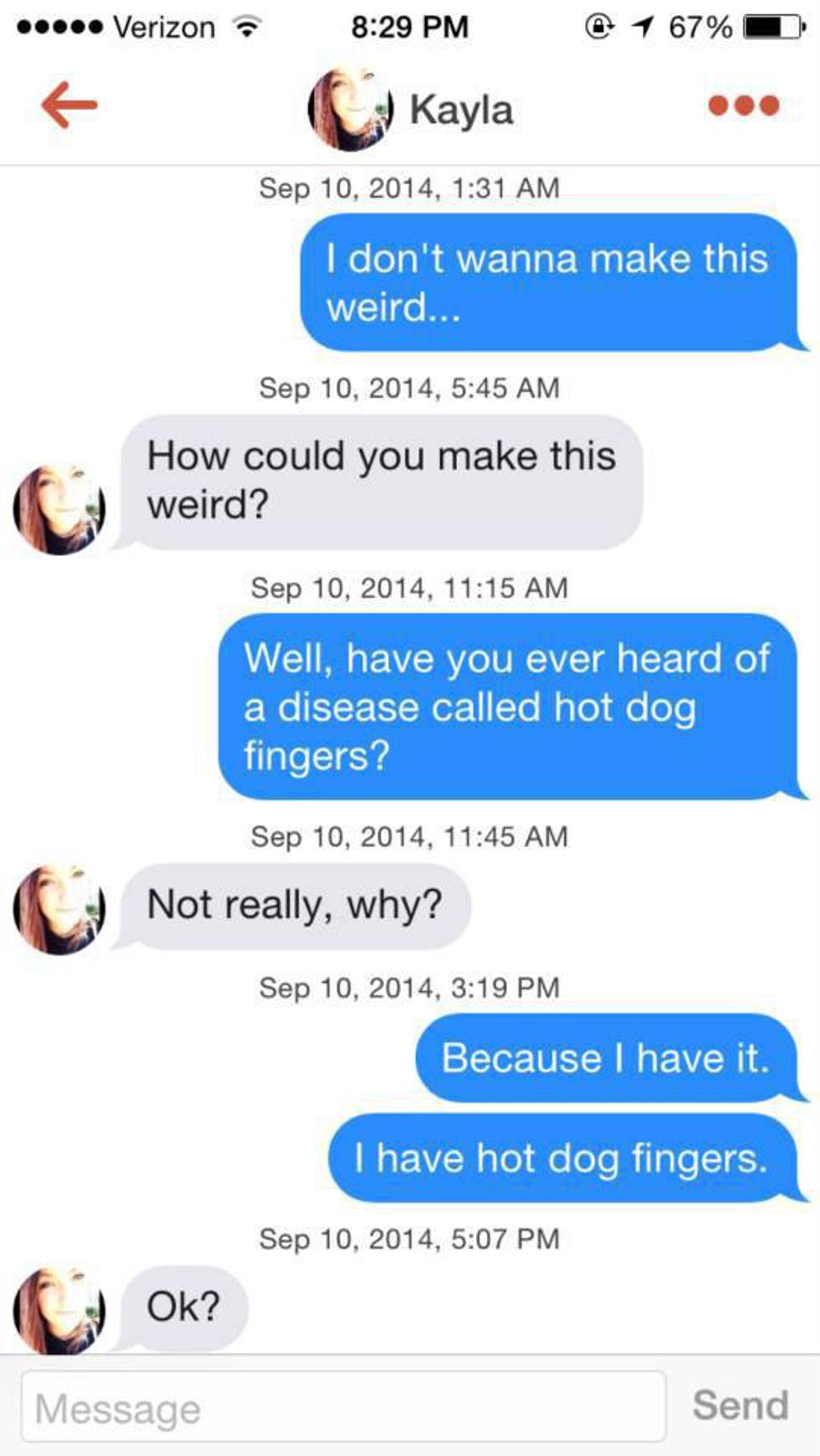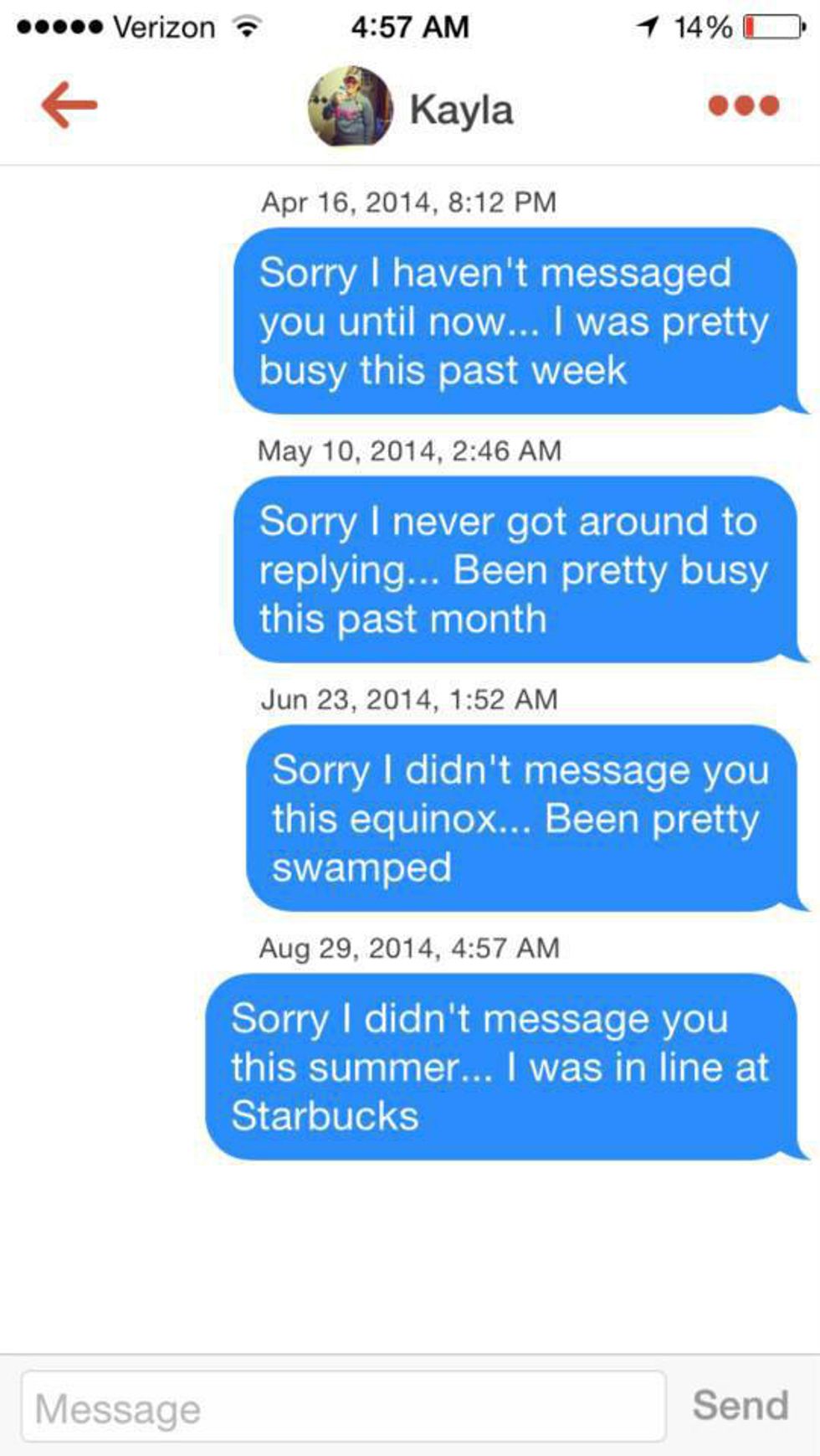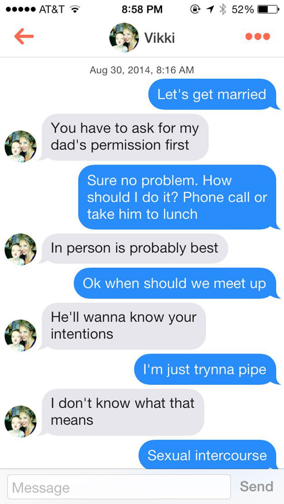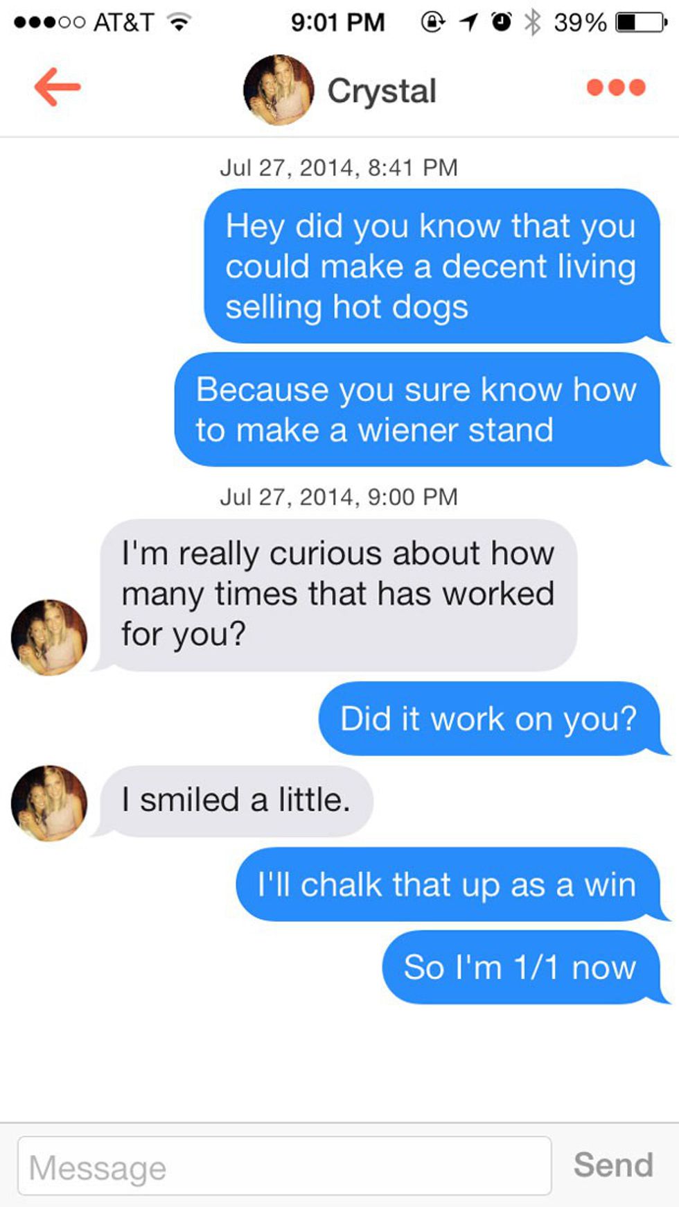 As they say, you get what you pay for, and Tinder is free. Save yourself while you can and never get a Tinder; unless you want to be approached with creepy pick up lines, then Tinder's probably the place for you. Safe swiping my friends!