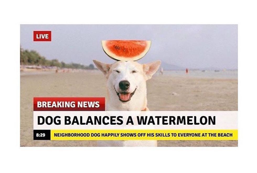 11. This is great to send anytime your friend is having a bad day... because who doesn't like getting a text of a dog balancing a watermelon on his head on a beach?