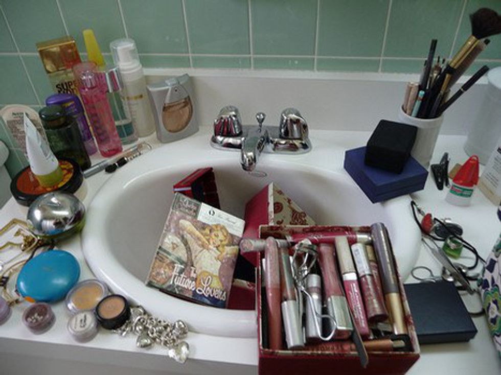 5. Leaving makeup all over the counter in the bathroom.