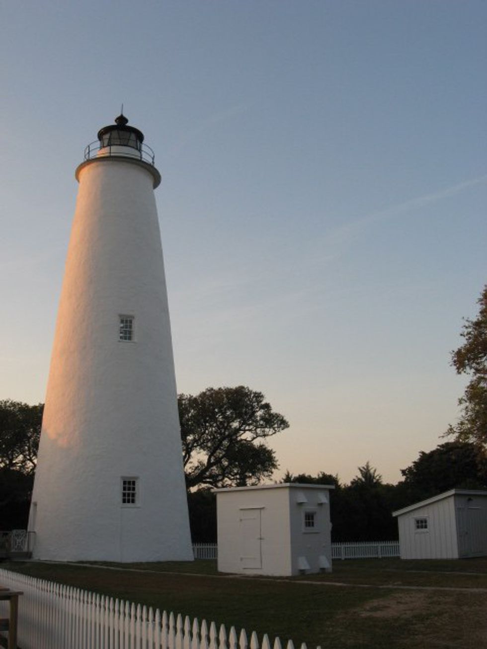Ocracoke Lighthouse was said to be one of Blackbeard's favorite places to hang out. The lighthouse itself is all white and the area sounding the lighthouse is amazing.