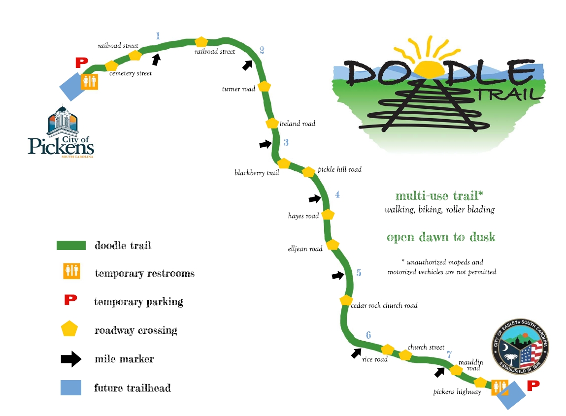 The Doodle Trail runs from Pickens to Easley, and is a great place to get some exercise. There is a place to rent bikes at the beginning of it in Pickens, as well.