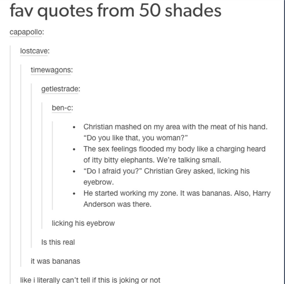 3. These unique "50 Shades quotes that express just how talented the author truly is.