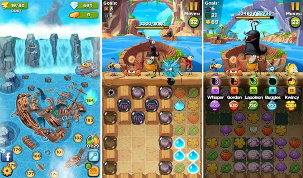 This is similar to the Candy Crush-style in that you have to connect shapes of the same color together. This is a much more fun version though because you’re trying to defeat slugs who have taken over the world. As you make matches with different colors, the colors correspond to different monsters on your team which have separate special powers that they use on the slugs. The game is even more complex because it allows you to find new monsters and level them up so you can make choices about which powers would be best for each new level. Every 20 levels or so, side quests are unlocked that can be a nice break from the main game.