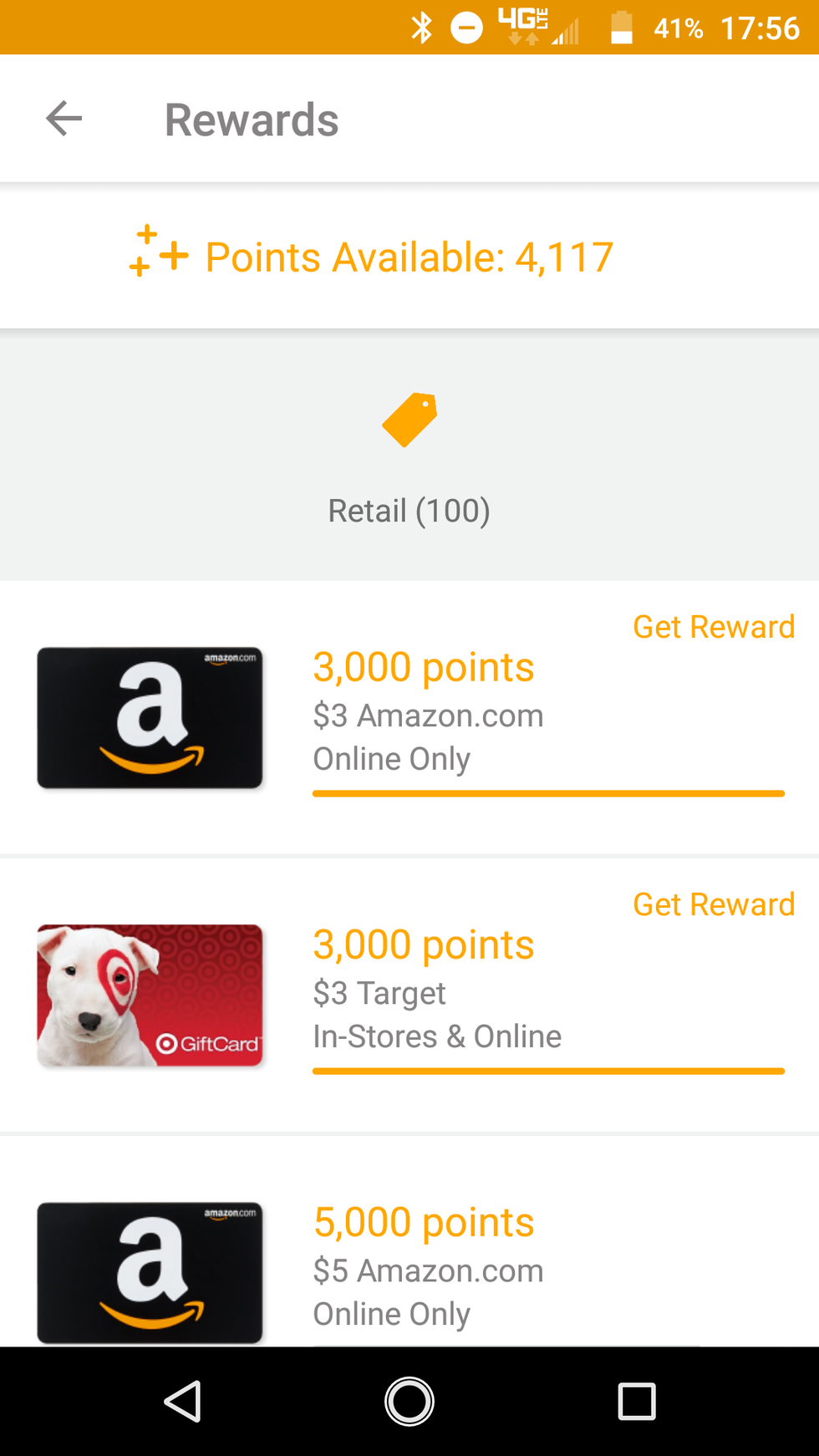 Snap a picture of your grocery receipt in the app and it will assign your points based on what you bought (no need to search for offers!) Redeem the points for gift cards to Amazon, Sephora, Best Buy, Regal, Fandango, Xbox, Athleta, Banana Republic, Old Navy, Bed Bath & Beyond, and more. No need to add offers before shopping; the app is smart enough to recognize based on your picture of the receipt.