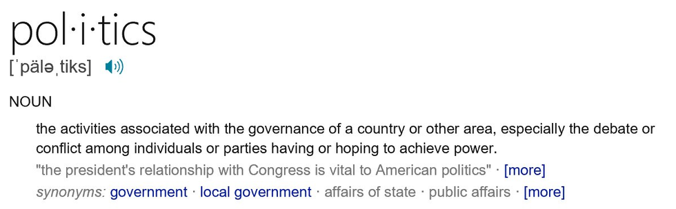 I always say I love politics, but that's a lie. I actually very much dislike politics, but I believe they're vital.