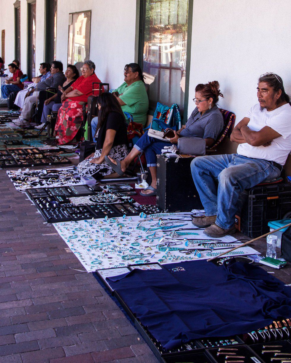 For almost a hundred of years the local Native American tribes would come every morning to the Plaza in the heart of the Historical District of Santa Fe to sell their jewelry. In more recent years the city has placed some regulations on their daily sales. They must meet every morning at 0700 for a “lottery” during which they draw names and only the names drawn are allowed spots to sell at the Plaza that day due to a limited number of spaces. Under a shaded overhang the Native Americans set out blankets and lay their jewelry out to present to potential buyers. According to city regulations, in order to sell at the Plaza you must be from one of the thirteen local tribes and all of your merchandise must have been handmade by either you or a family member. If you do go to the Plaza and see a piece of jewelry you like, make sure to buy it because there’s no guarantee that vendor will win the “lottery” the next day and be allowed to sell.