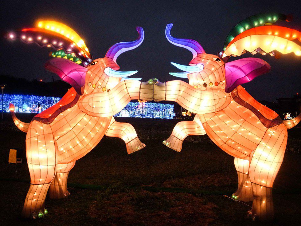 A Taiwanese lantern festival consists of lantern making, lantern riddle contests, local traditional foods and displays of extraordinarily intricate lantern sculptures. The traditional lantern is called a “heavenly” or “sky” lantern, made from thin wire or bamboo frames covered in oiled tissue paper. A paper ball doused in kerosene inside the lantern is lit, and the hot air carries the lantern up into the sky. Originally devised by inventor Kung Ming around 200 AD, it is believed that the lanterns were first used as a means of communicating from remote areas of the mountains, especially to let other villages know they were safe. Now they provide an avenue of sending wishes for the New Year up to the heavens to be deciphered and fulfilled by the deities.