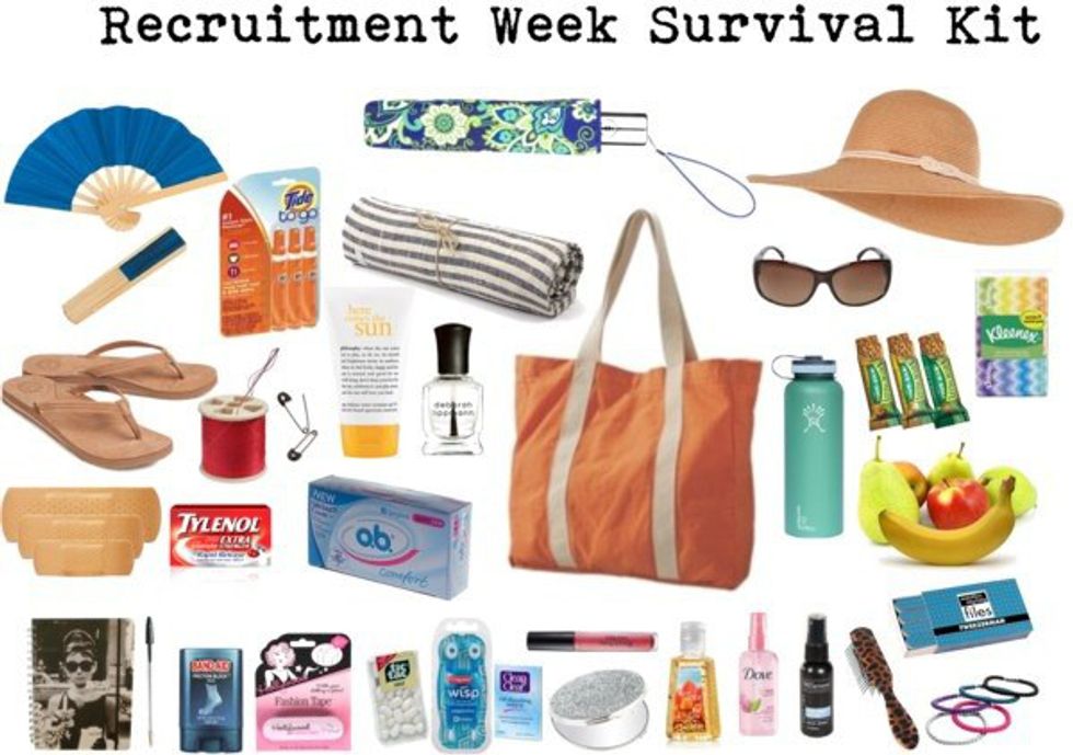I remember when my roommate and I went through recruitment, there was a huge list of things we thought we needed. Boy were we wrong. However, there are a few essentials that will help you get through the week. Bring a towel or a blanket. Sometimes the ground is wet or the grass is freshly cut. Whatever it may be, you want to keep your clothes clean. And of course it always helps when you start to sweat. Another thing to help with the heat is keeping water with you. Just carry a small cooler bag with you and keep a couple of bottles of water. You might think you won't need it, but you will. By the end of the night you'll feel like you're losing your voice. It's super loud in the houses and you're basically screaming so you can be heard. Another good thing to keep on you is makeup for touch ups. I'm not saying you need to bring your whole makeup bag, but it definitely helps to keep blotting pads, powder and some lip gloss.