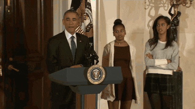 Truthfully told, I think Obama is adorable. I wasn't old enough to vote when he was running, but like every previous President, I believe he did the best of his ability. Plus, Michelle Obama is one of the funniest First Ladies ever. I also connect with his daughter's on a spiritual level.