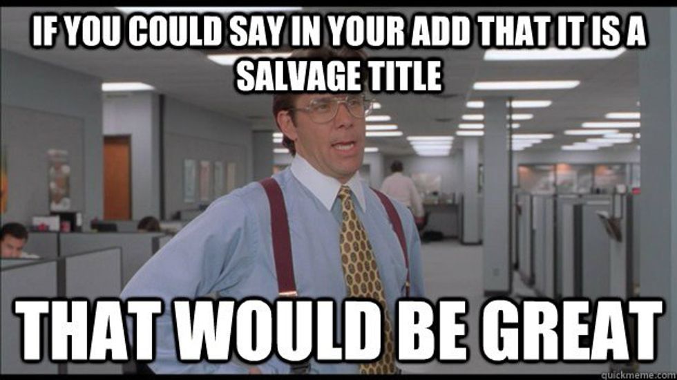 When buying used, one of the most important questions to ask is what the status of the title is. Many sellers will often leave out the fact that a car has a salvage title. But what exactly does a salvage title mean? Salvage titles are issued to vehicles that have previously been in serious wrecks and restored to operable condition. While a salvaged vehicle will still run and drive, there could be some serious underlying issues such as a bent frame, cracked engine block, etc. all of which can be costly repairs. In short, salvage titles could empty your pockets quickly on maintenance and repairs, so steer clear.