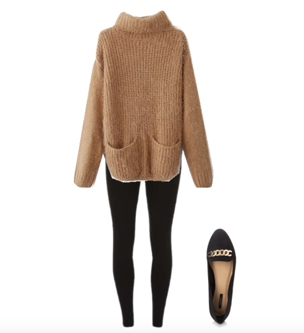 If you're trying to go for a casual and laid-back look, then this outfit is for you. There is nothing better than to wear an oversized sweater when your day consists of you stuffing your face with food. This outfit is simple and comfy, but the loafers really help dress up the look.