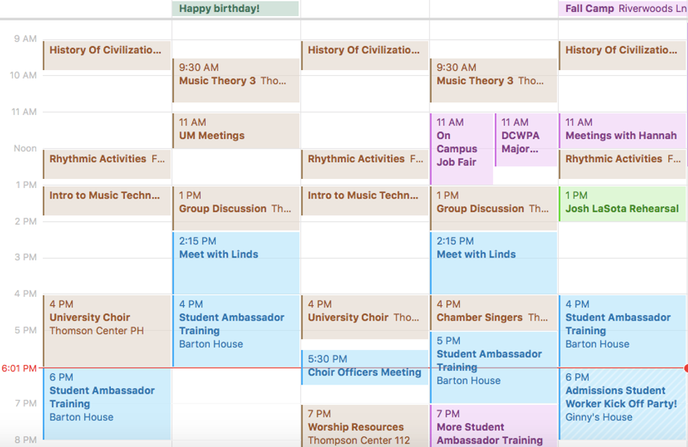 See, something there that is very small in my week? "Happy birthday!". Yup, I turned 19! But in the thick of all of that, I had meetings, I had training, I had classes. I didn't have much time to really do what normal people do for birthdays. Taking time off. Going on walks, sitting on your own, treating yourself to coffee. That was rest for me. And if I didn't have it, I might have broken down at some point (and I sure was close).