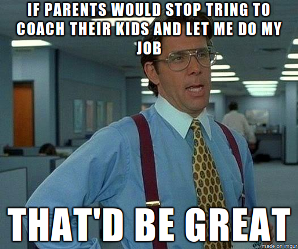 Last, but certainly not least. We all have those parents, coaching us up and down the sideline. Those parents that your best is just never good enough. You are either the champion of the world or you are the loser. We have all had those teammates that have turned to their parents, in disgust because they won’t stop coaching every kid around. The parent’s that think every sport is simple X’s and O’s, the simple A to B then you win. If only your team could score!!!...No way?! That’s how we win?? Johnny, just keep your eye on the ball!... Thanks captain obvious.