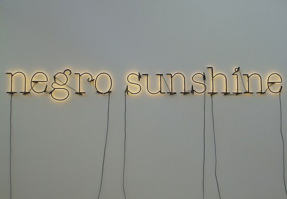 I do think that the use of words in his work was interesting. The neon sign pieces, Gold Nobody Knew Me #1, and Gold When Black Wasn’t Beautiful #1 took what I imagined to be stereotypes or daily life scenarios that African Americans must deal with and then flipped the script in a way. For example, I liked how Untitled (Negro Sunshine), 2006, used the word Negro and Sunshine simply next to each other with a neon light. This simple depiction simplifies a complex issue – which may or may not be a good thing. It juxtaposes the idea of dark skin and unfortunately maybe even a darker life with light. Negro Sunshine says that Negro is not lesser than white – the equivalent to light.