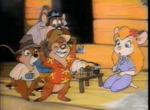 In this show, the two chipmunks, Chip and Dale set out on adventures with their friends to solve mysteries. They have their own detective agency. The gang solves crime, usually involving the feline villain, Fat Cat.