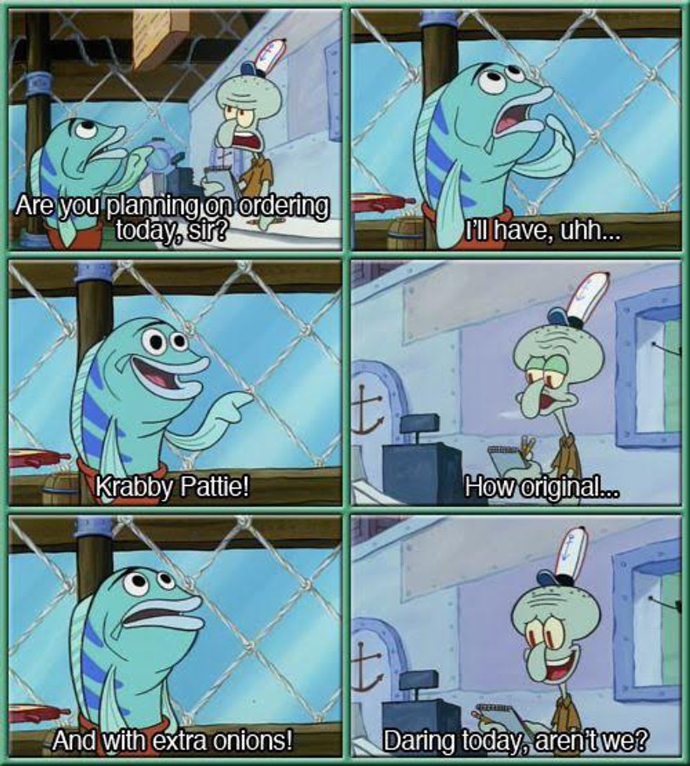 We all know the basic Spongebob quotes and casually throw them into conversation at least once a day- but, since there are so many incredibly witty jokes jam-packed into each episode, it is easy to forget some of them. Here is a list of all those Spongebob quotes that don't get as much recognition for being hilarious.