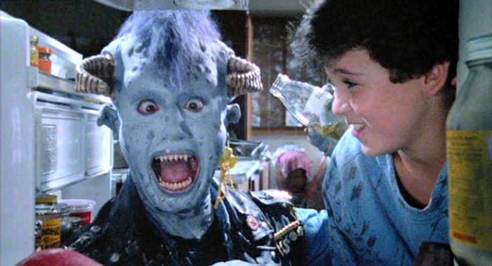 A salesman is looking for a special gift for his son. He finds a unique one in a store in Chinatown. The shopkeeper is reluctant to sell him the gift but sells it to him with warnings. 1. Never expose it to bright light. 2. Never expose it to water. Most importantly, never ever feed him after midnight. All of this happens and as a result a gang of gremlins decide to tear up the town on Christmas Eve.