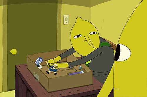 The Earl of Lemongrab is extremely awkward, high strung, and uncomfortable for most to be around, yet he has a strong desire to rule others. Lemongrab blames PB for creating him without any ability to relate to others and complains about how lonely he is. Because of this, the Princess creates a second Lemongrab for him to live with. Of course they had to greet each other with poking and weird sounds.