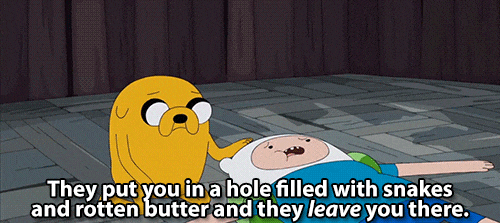 The concept of the dentist is very different in the post-apocalyptic world of Ooo. To go to the dentist, Finn is put in a well with snakes and butter to then be taken to an ant military base. There the ants promise to fix Finn’s teeth in exchange for helping them fight off their enemies.