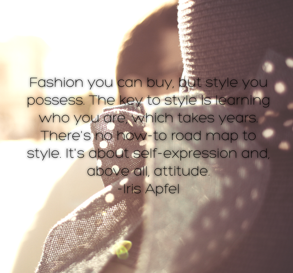14. "Fashion you can buy, but style you possess. The key to style is learning who you are, which takes years. There's no how-to road map to style. It's about self-expression and, above all, attitude." -Iris Apfel