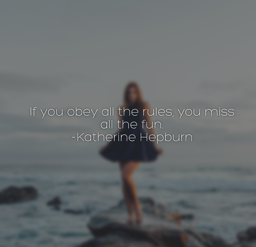 22. "If you obey all the rules, you miss all the fun." -Katherine Hepburn