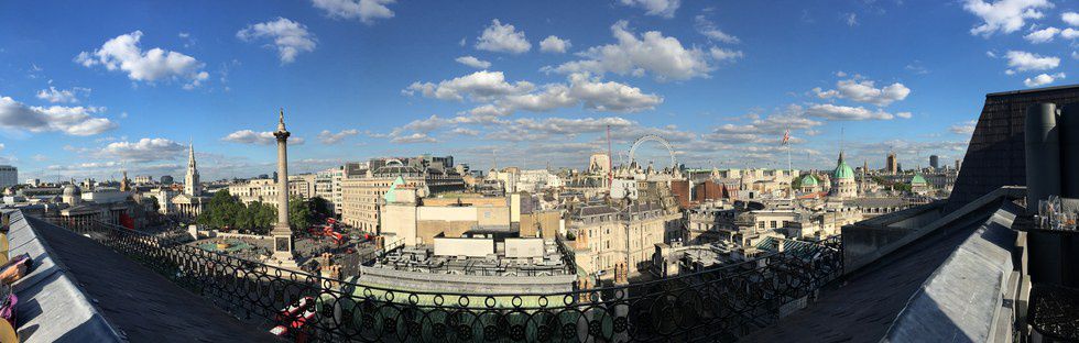26. Panorama from the rooftop bar of our hotel in Trafalgar Square in London
