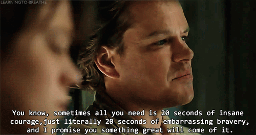 14. You know, sometimes all you need is 20 seconds of insane courage. Just literally 20 seconds of just embarrassing bravery. And I promise you something great will come of it. - Benjamin Mee, We Bought a Zoo