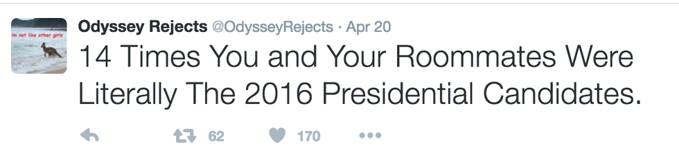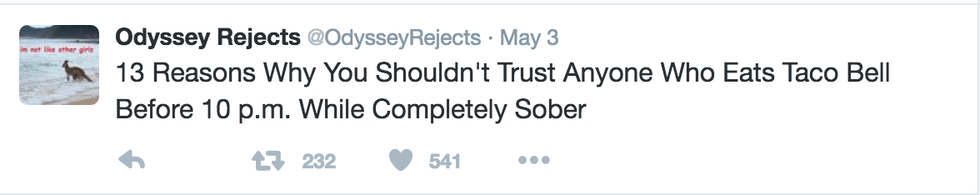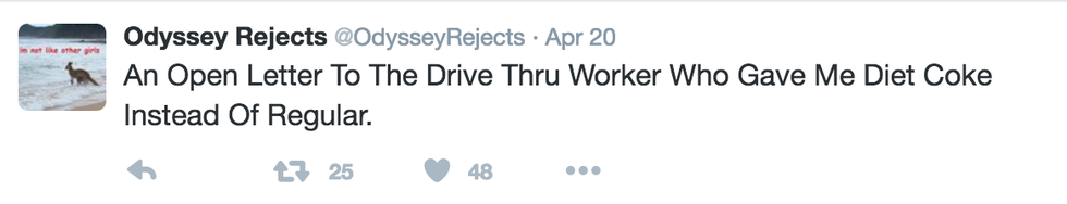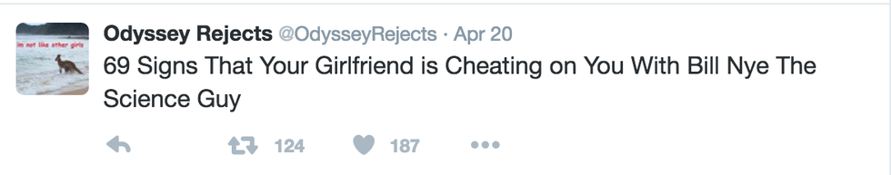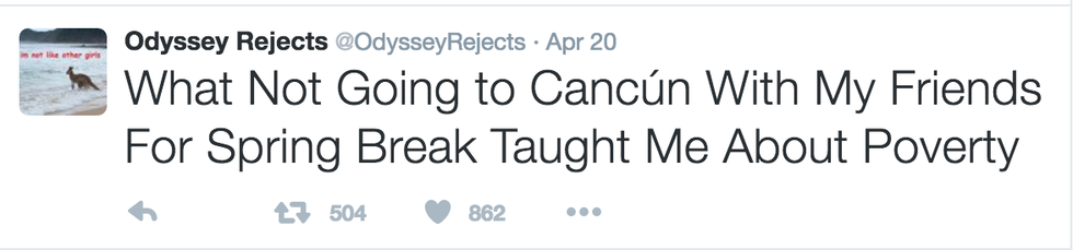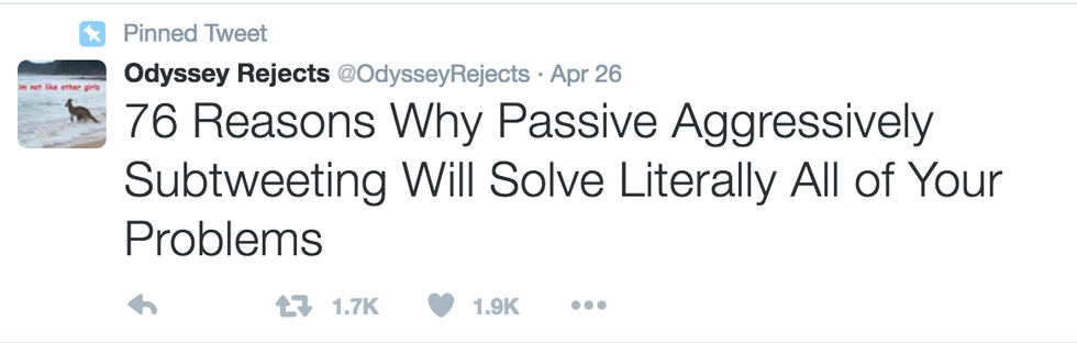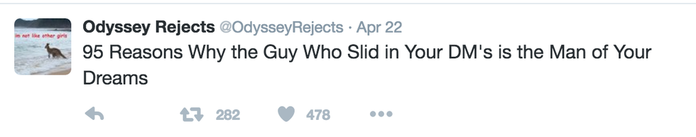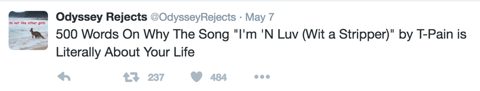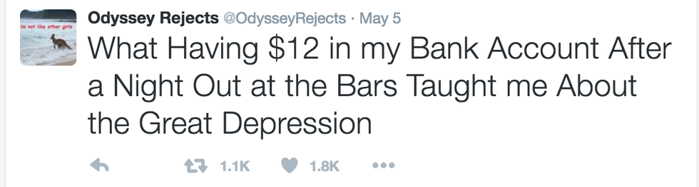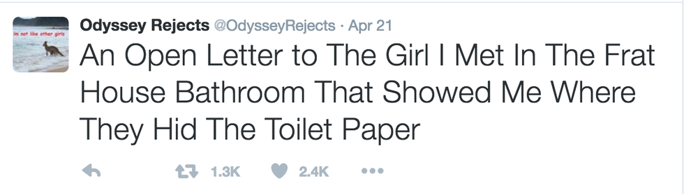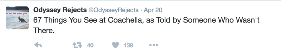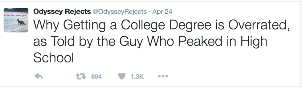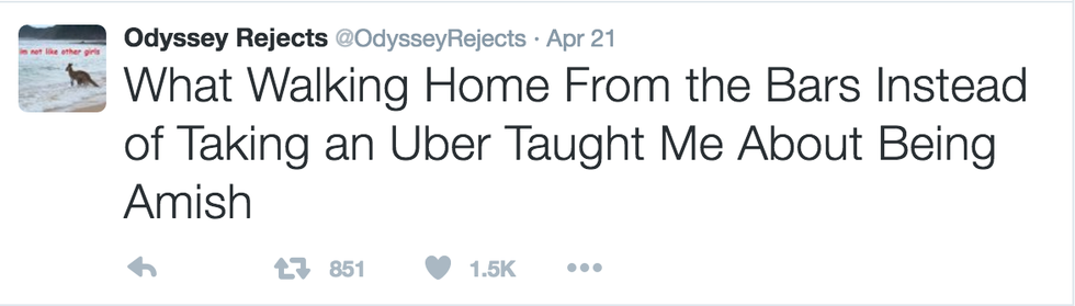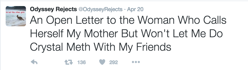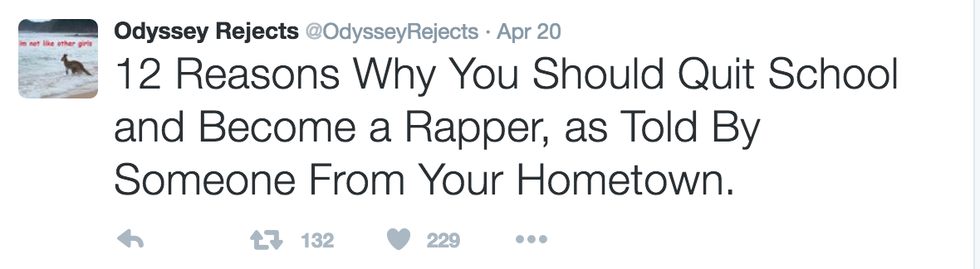 A Twitter Account surfaced earlier this year called Odyssey Rejects (@OdysseyRejects) that posts prompts to articles that wouldn't make the cut here on The Odyssey. However, looking through the account always makes myself and my co-writers laugh due to how silly some of them are. Without further ado, here are the top 31 Odyssey Reject topics.