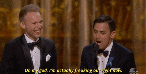 25. Benj Pasek reacted like any other normal person would when winning the Oscar.
