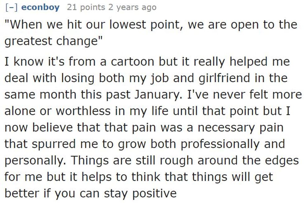 There is no "wrong" answer or response, as we're just doing what we can to stay afloat and keep ourselves together. Usually, in these times of struggle, we seek out uplifting words to raise our spirits, and sometimes we find exactly what we need to hear.