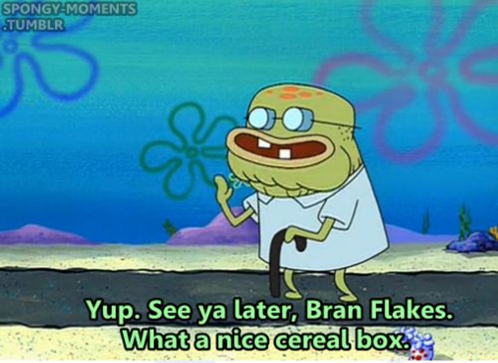 32. "See ya later, Bran Flakes! What a nice cereal box.”