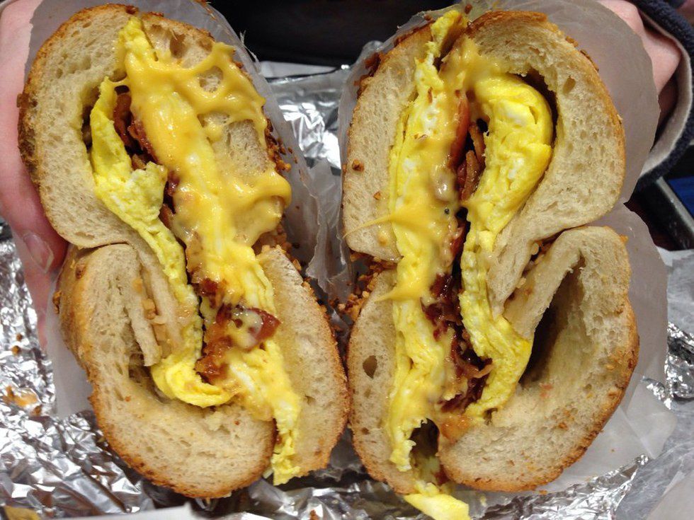Bacon, egg, and cheese smothered in salt, pepper, and ketchup on a roll. A.k.a. the best breakfast when you’re having a rough morning, or really any morning.