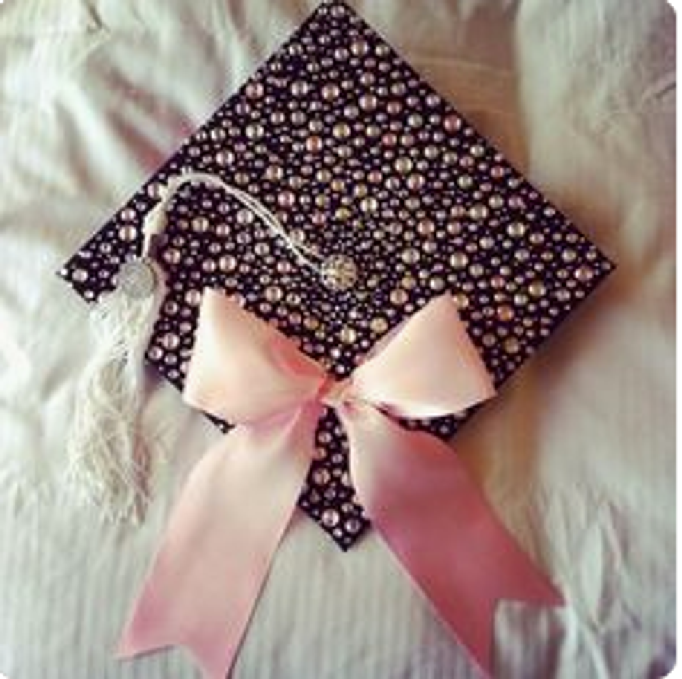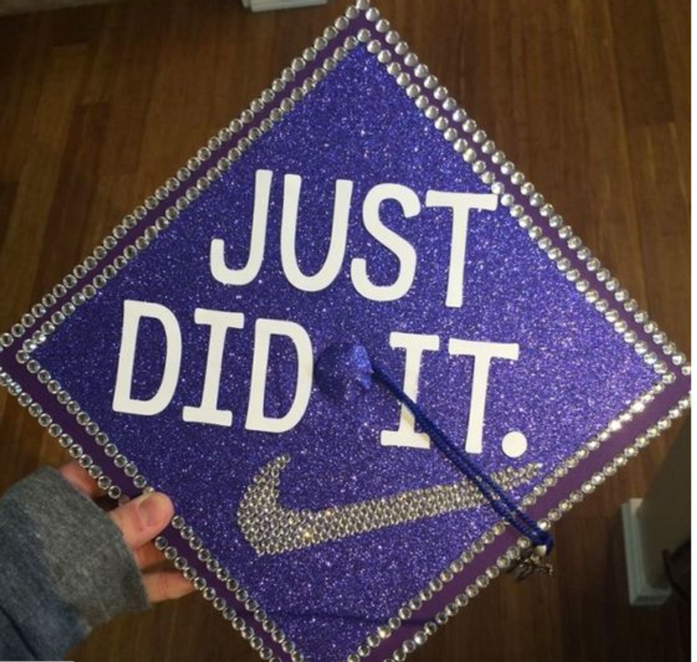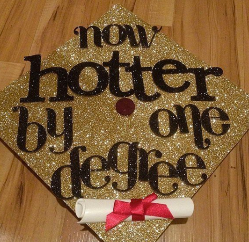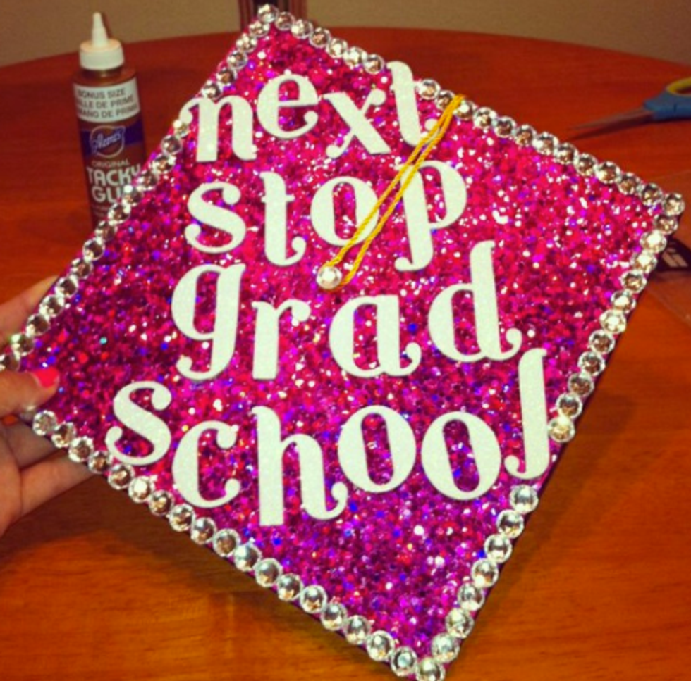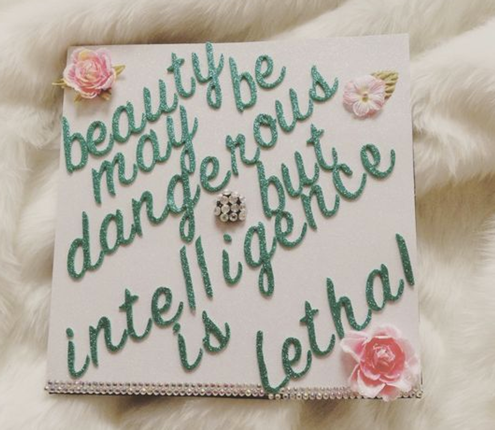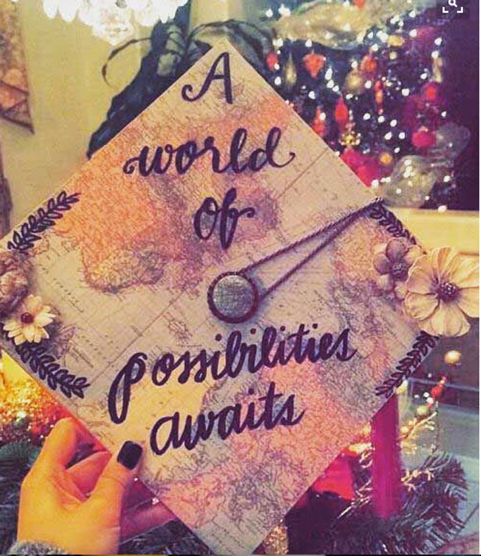 While I'm still only a junior in college and I have a whole year left to go until I have to start thinking about all the crafty ways to decorate my graduation cap, I have a lot of friends who are indeed graduating this semester. And I will miss them terribly! So in light of all the graduations taking place across the country (or globe, for that matter), I figured I'd compose a list of inspirational, punny, and pretty caps for this graduation season! Not to mention, I'd like to use this as my own guide so that when it's my turn to receive my diploma at this time next year, I can look back at this catalogue of ideas for some ideas! So if you're a graduating student on the hunt for the perfect way to decorate your graduation cap, here are a few that I hope spark your interest!