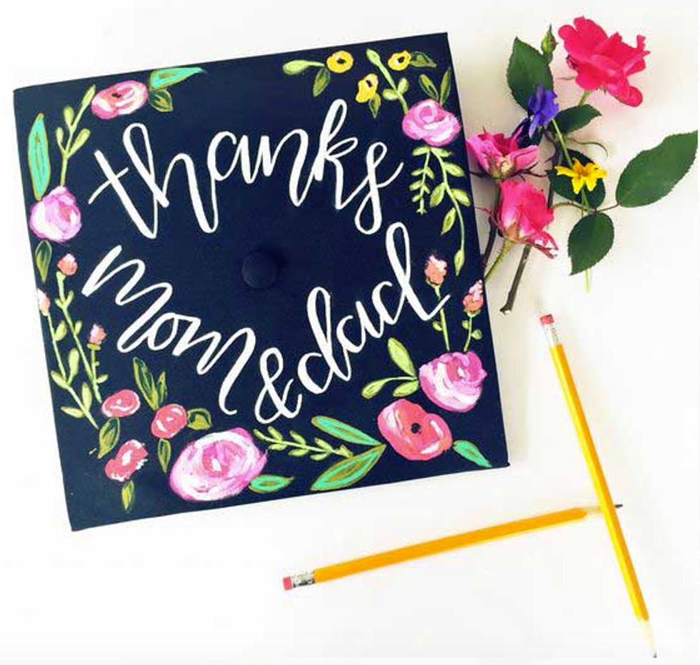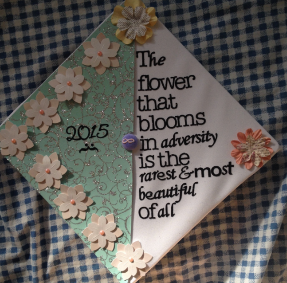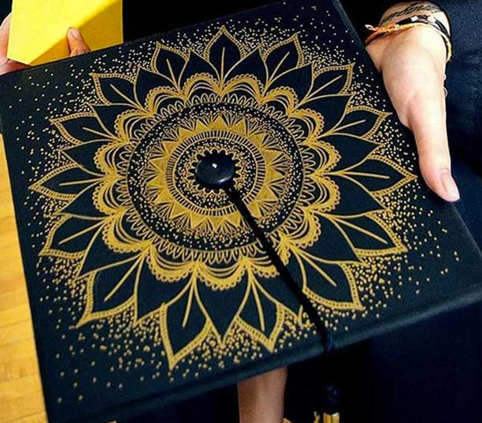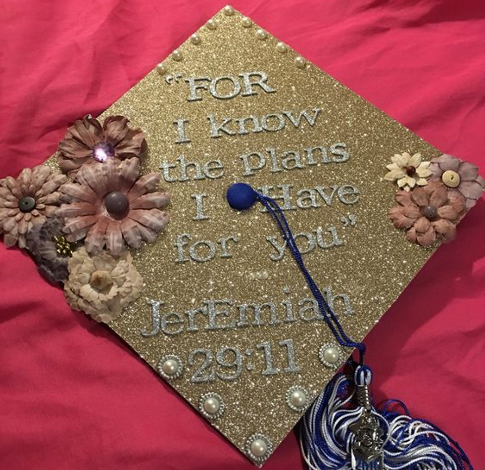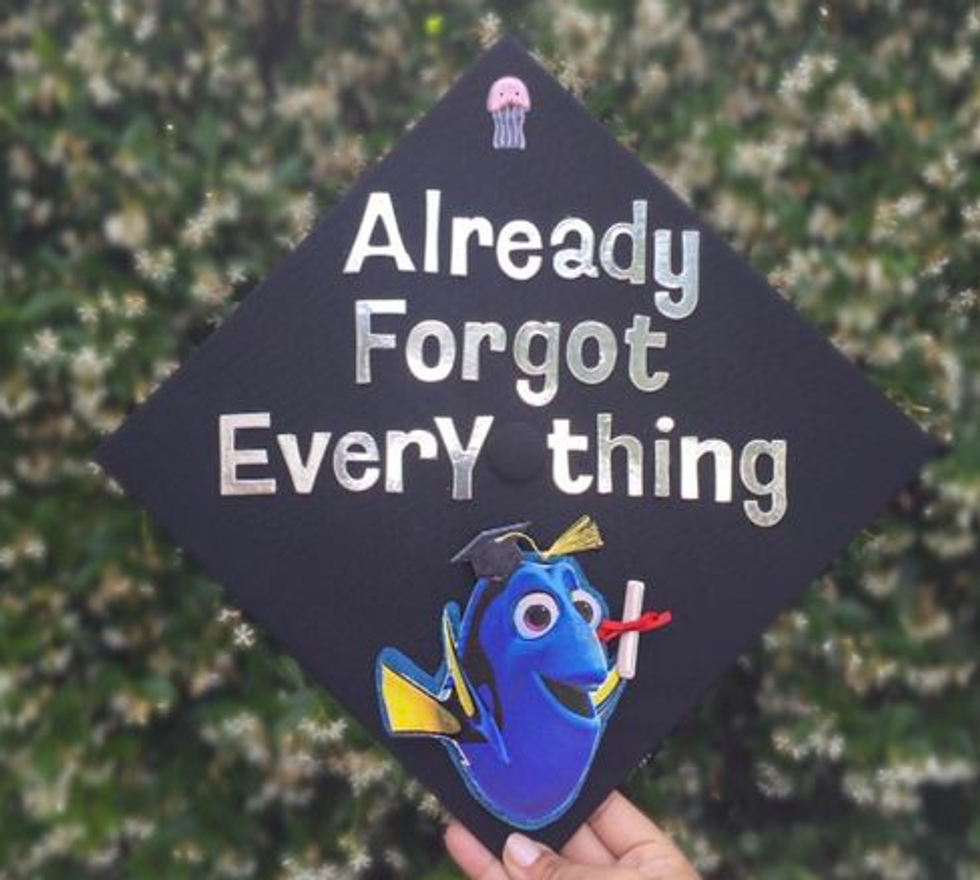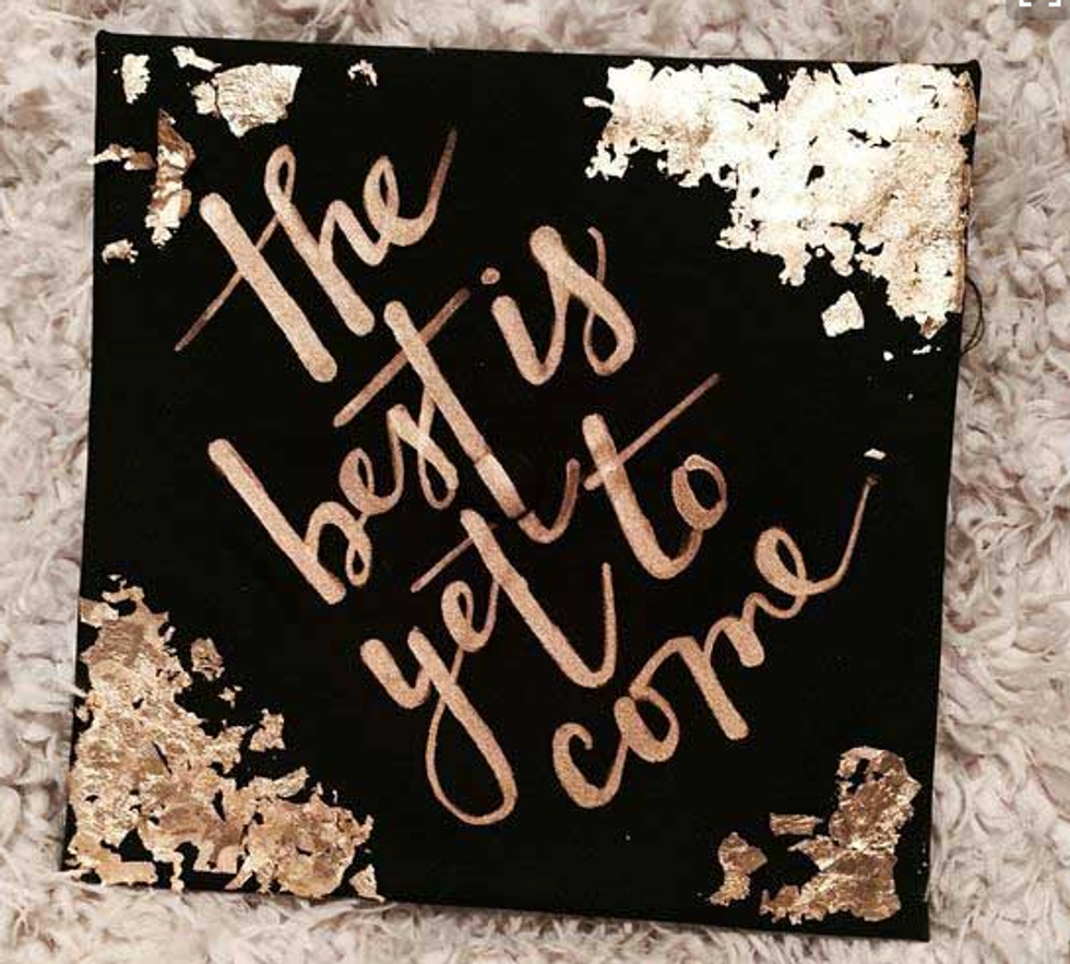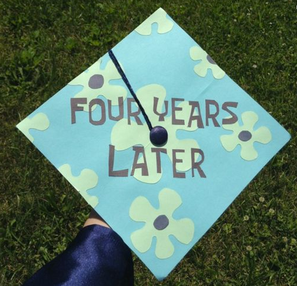 While I'm still only a junior in college and I have a whole year left to go until I have to start thinking about all the crafty ways to decorate my graduation cap, I have a lot of friends who are indeed graduating this semester. And I will miss them terribly! So in light of all the graduations taking place across the country (or globe, for that matter), I figured I'd compose a list of inspirational, punny, and pretty caps for this graduation season! Not to mention, I'd like to use this as my own guide so that when it's my turn to receive my diploma at this time next year, I can look back at this catalogue of ideas for some ideas! So if you're a graduating student on the hunt for the perfect way to decorate your graduation cap, here are a few that I hope spark your interest!