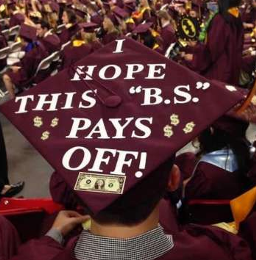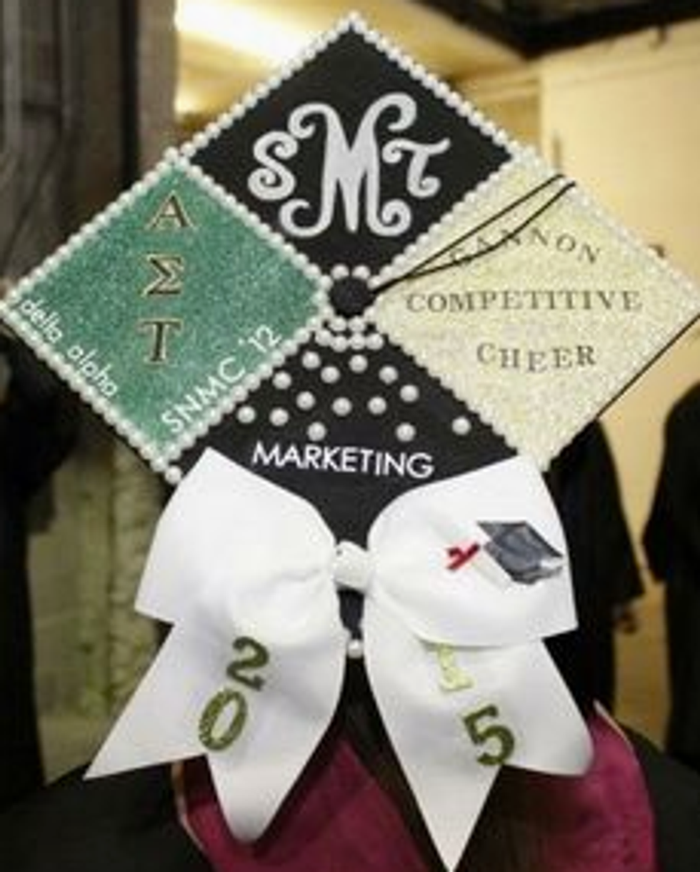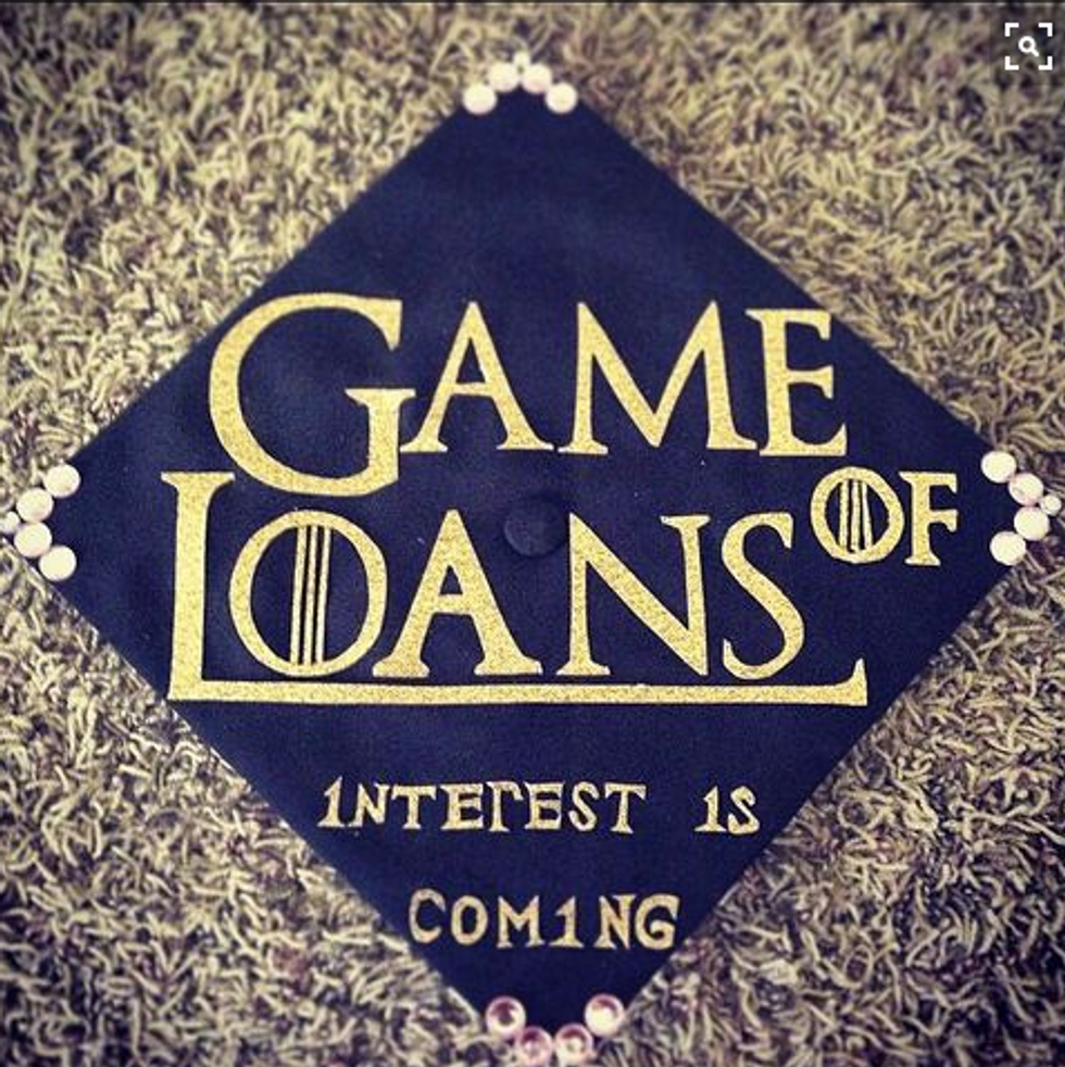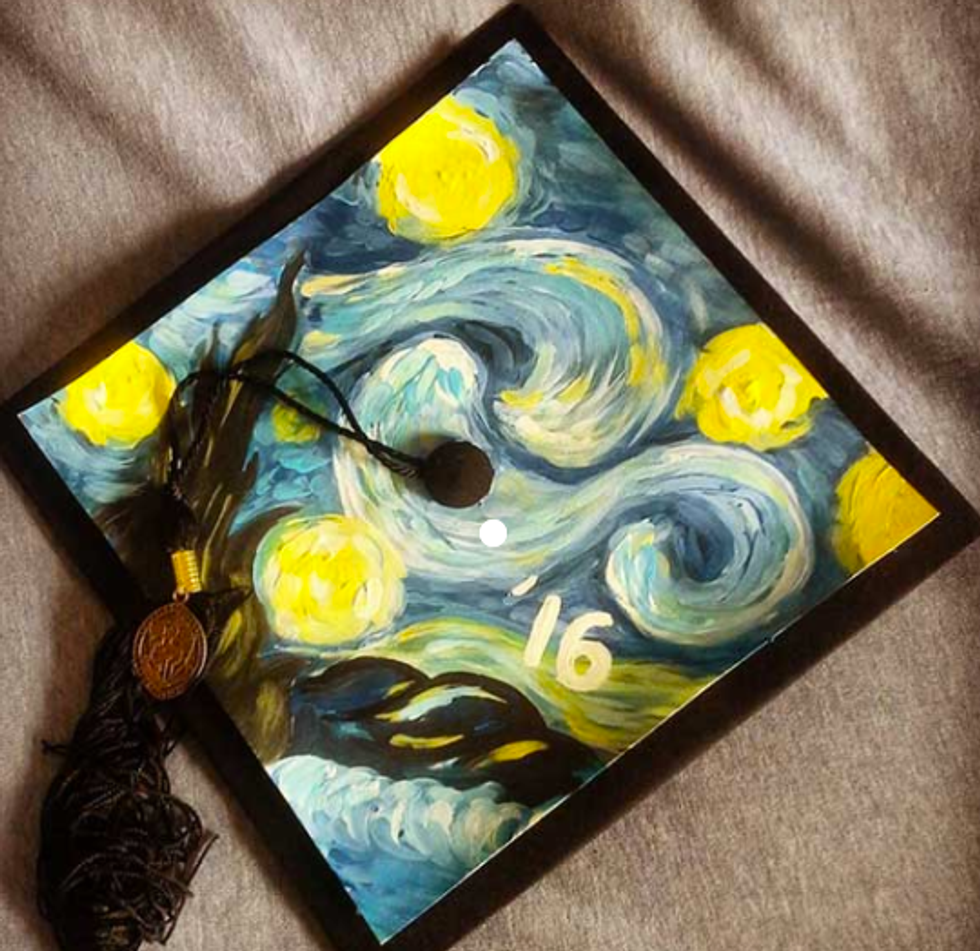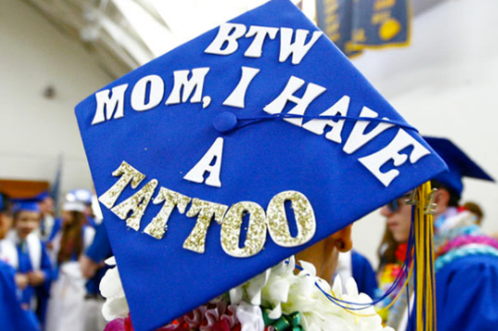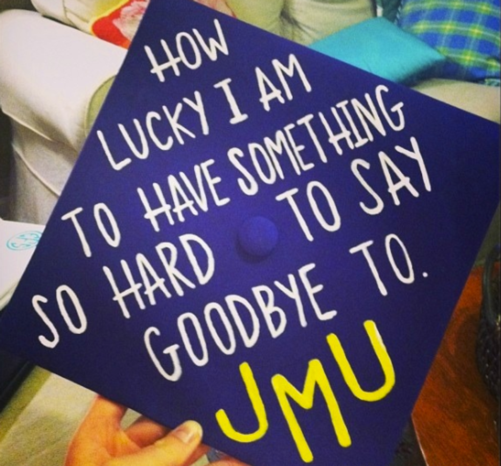 While I'm still only a junior in college and I have a whole year left to go until I have to start thinking about all the crafty ways to decorate my graduation cap, I have a lot of friends who are indeed graduating this semester. And I will miss them terribly! So in light of all the graduations taking place across the country (or globe, for that matter), I figured I'd compose a list of inspirational, punny, and pretty caps for this graduation season! Not to mention, I'd like to use this as my own guide so that when it's my turn to receive my diploma at this time next year, I can look back at this catalogue of ideas for some ideas! So if you're a graduating student on the hunt for the perfect way to decorate your graduation cap, here are a few that I hope spark your interest!