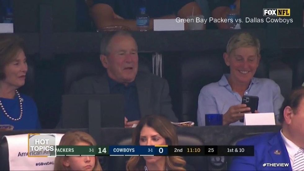 26. That one viral photo of Ellen Degeneres hanging out with President George W. Bush at a football game