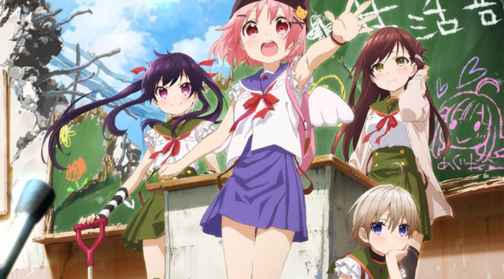 I can't reveal too much because the idea of the show is for the plot twist at the end of the first episode to be a huge shock. But, I will say that it's about four girls that are a part of the School Living Club, in which the girls live out their lives at school and partake in all the school's activities. At least, this is the plot of the first episode. After that, the show takes a darker turn.