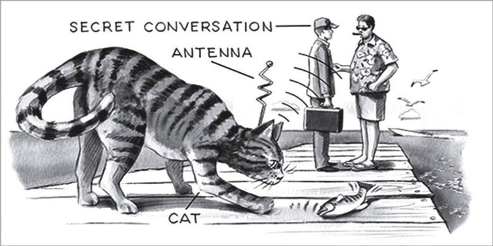 Everybody knows that if the CIA can find a medium to eavesdrop, they're going to take it. Wiretapping or clandestine bugging might not seem out of the ordinary, but the U.S. government has reportedly also attempted to use dolphins, crows and even pigeons as spies. Perhaps the most ill-advised of these undertakings was when the CIA attempted to use cats to eavesdrop on suspected Soviet agents in Washington, D.C. in the 1960's. Outfitted with expensive wiretapping and radio transmitting equipment, the acoustic kitties cost the agency a clean $20 million, according to former agent Victor Marchetti.