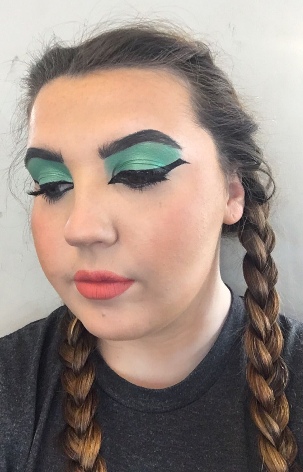 Channel your inner Egyptian with this colorful take on a classic Cleopatra look! For the costume, you will need a white dress, gold bet, blue shawl, and sandals. The makeup look can be done with a teal shadow all the way up to your brow, inner and outer winged liner (pointing the wing downwards in the outer corner) and a peachy lip. Walk like an Egyptian when going to your Halloween event this year!