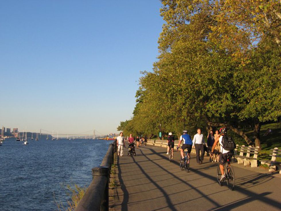 Personally, I think this is the best running path in the city. While you do have to share with bikers and skaters, the views of the Hudson are breathtaking during sunrise or sunset. And, if you run downtown, you'll get an impressive view of the Freedom Tower and glances at the Statue of Liberty. Running down here will let you breathe the salty water of the Hudson and give your nose a break from NYC's garbage au parfum.