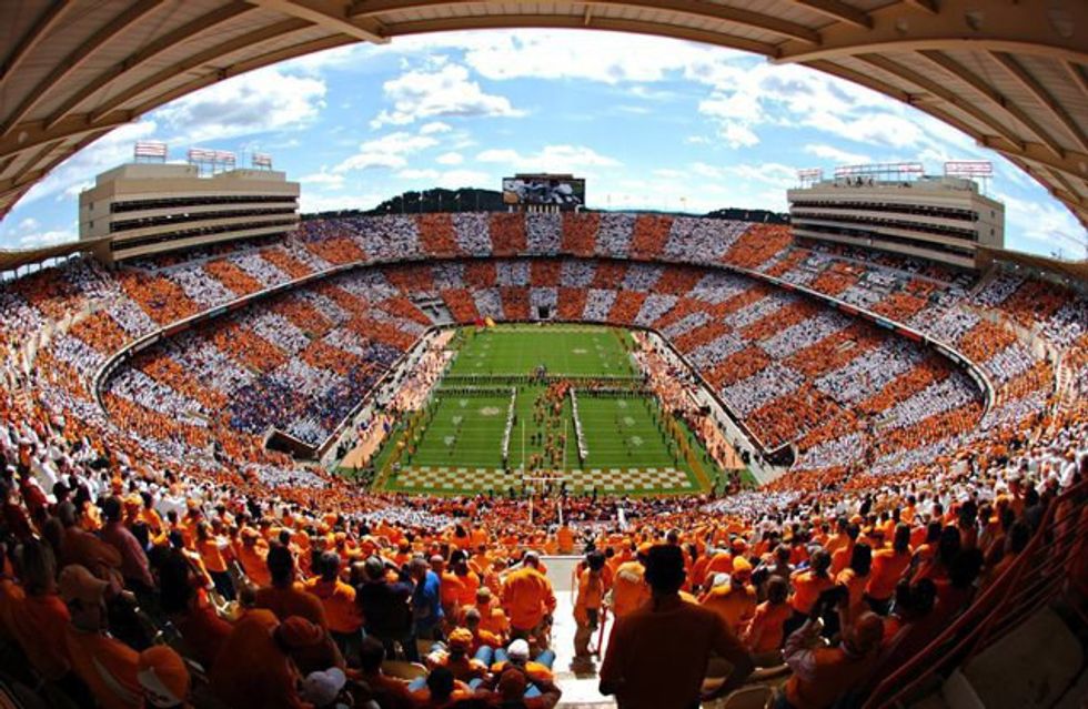 As football season approaches, Tennessee fans transform their undecorated cars and homes into an advertisement for all that is Big Orange. Fans can show their love in many ways. The more orange you can see from farther away, the better. For instance, fans may express their support by placing car flags on their windows, Power T's on the backs of their cars or purchasing a new Tennessee mailbox.