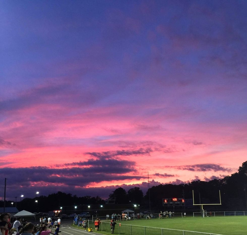 I love this picture because of the sweet memories it brings back. Recently, I attended my very last football game as a high school student. The times that I had under these stadium lights are some of the times I hold very close to my heart. I met new friends here, I laughed here (maybe sometimes a little too obnoxiously for the parents sitting behind me), I cried after losses here, and I celebrated after wins here. I will never forget the memories I have made beneath these sunsets.