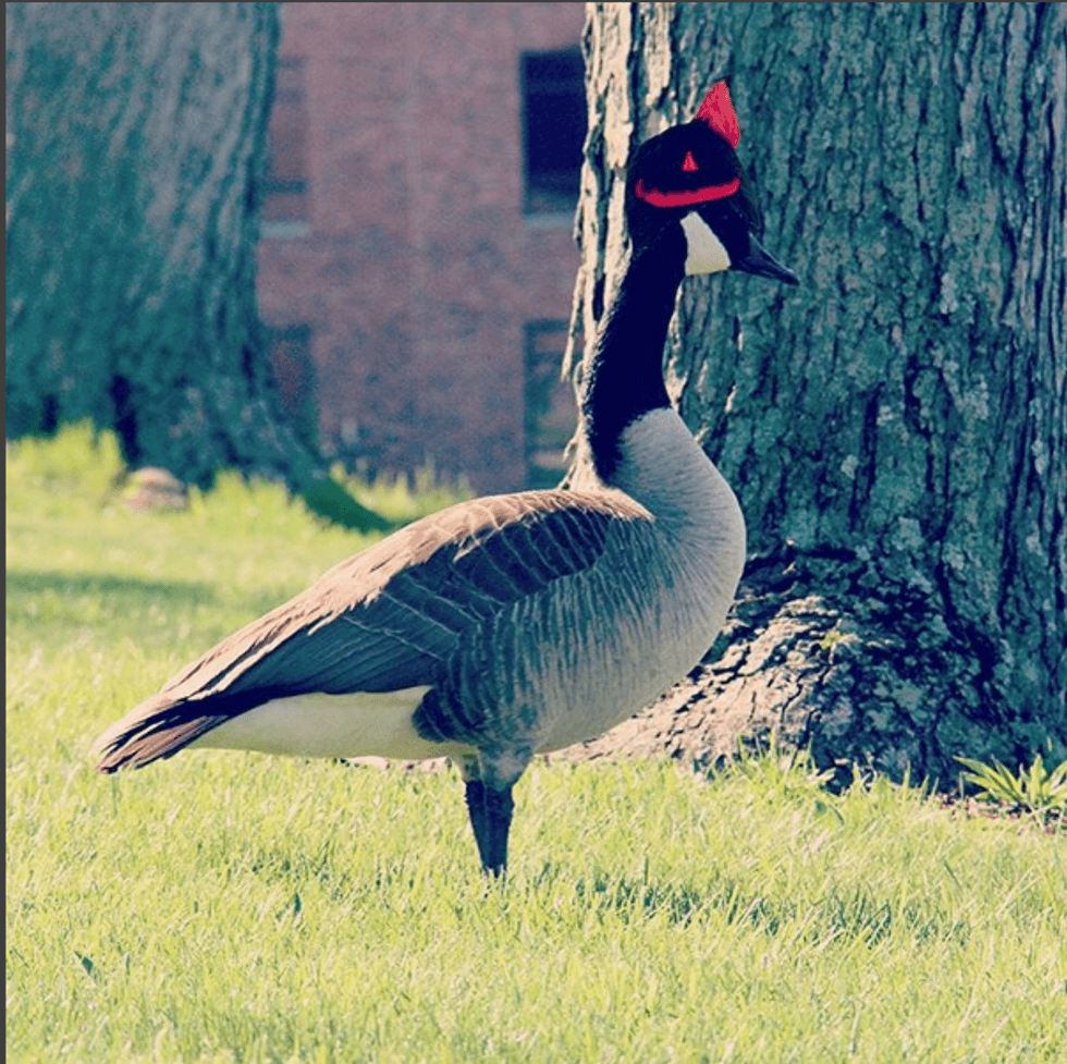 The geese are infamous on our great campus. They're known to take over parking lots, inhabit every body of water on the property, and literally attack people. Seriously, don't even go near them, especially in the Spring. The pic above was posted on the IU Southeast Instagram as an April Fools joke, introducing this goose as our new mascot, "Gus the Goose." They may be cute and funny to look at, but really, folks, leave them be. (Don't even get me started on the squirrels.)