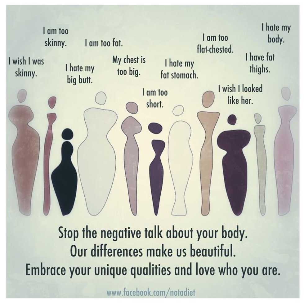 In the world we live in, physical appearance can feel like the only thing that matters. We read articles about "How to lose ten pounds, FAST," and are constantly bombarded with what the ideal body shape is for men and women. I have fallen into the trap for the longest time until I recently got into the body positive movement, which is about loving the body you have and appreciating it at all times. Like lots of people my age, I spend a fair amount of time at the gym making sure I'm taking care of my body. I am a woman on the larger side and when I first started going into the gym it gave me a fair amount of anxiety. Lots of doubts floating around in my head such as: