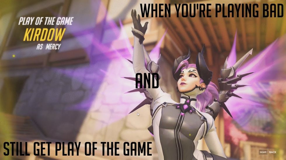 You know that feeling, when you just killed their entire team and only have 3 health left and suddenly your teammate screams into the mic to kill Mercy, but it's too late, all the characters are coming back to life around you, shrouded in a lovely golden glow? Yeah, me too.