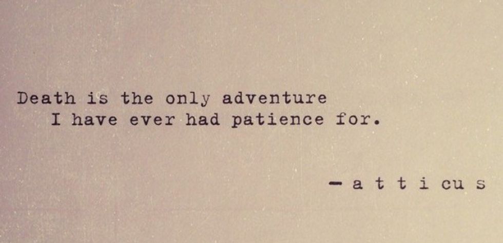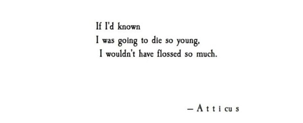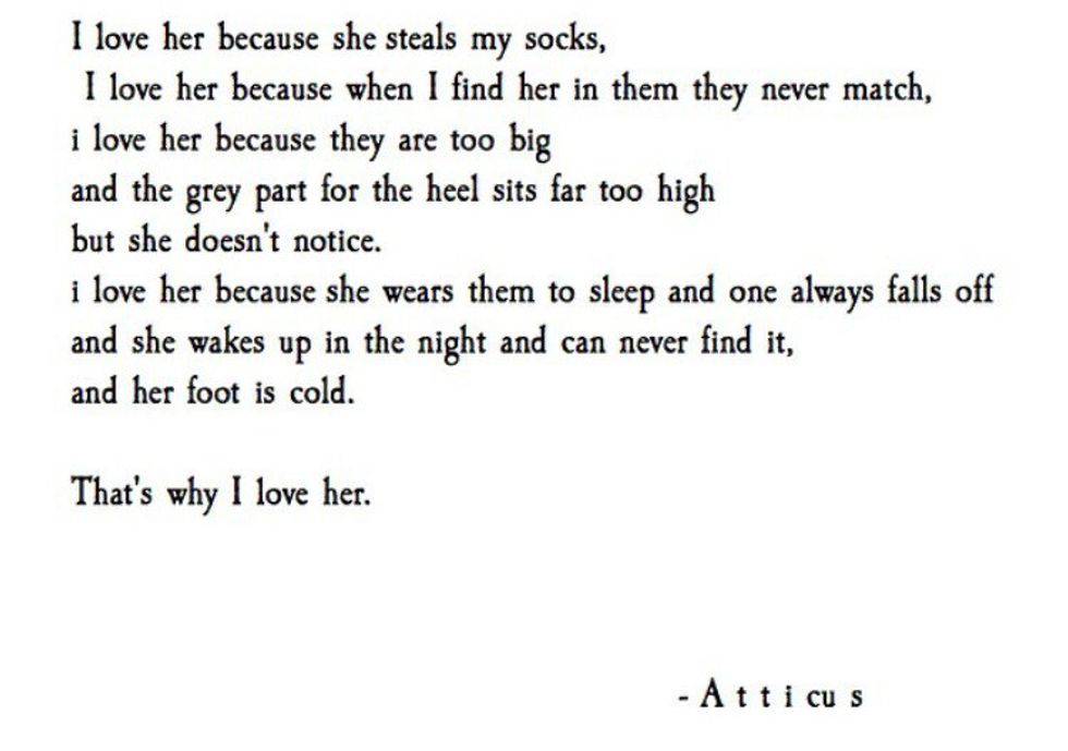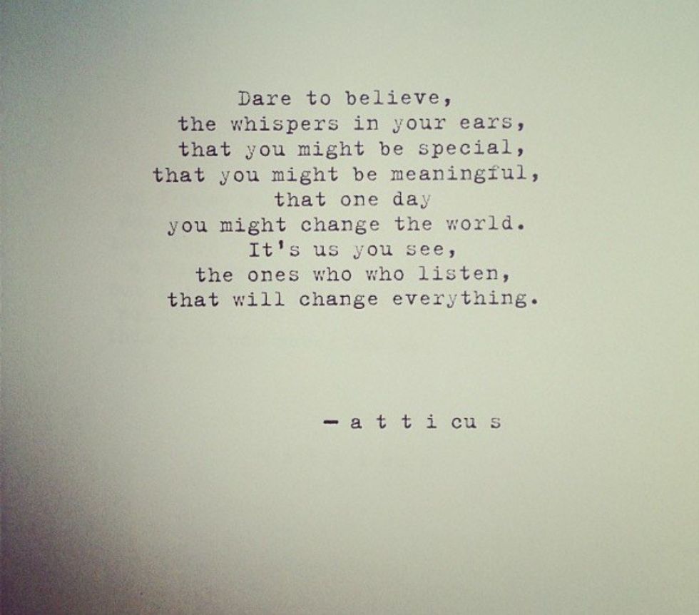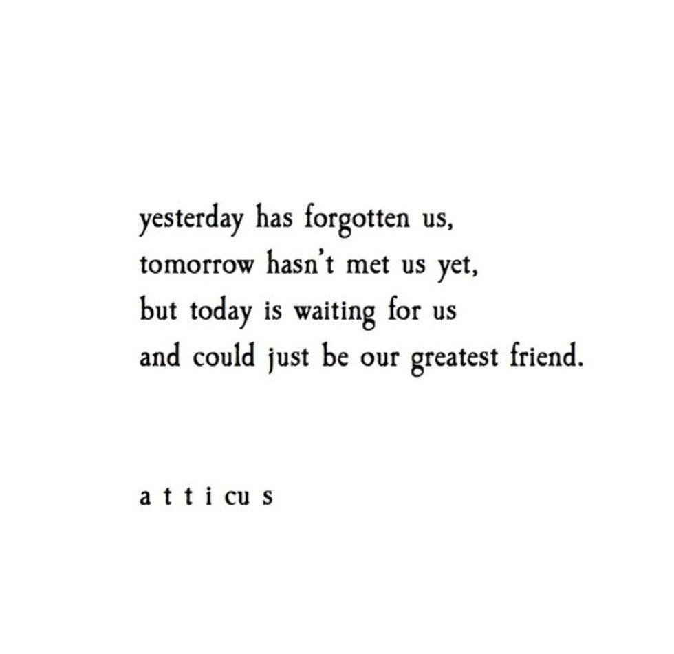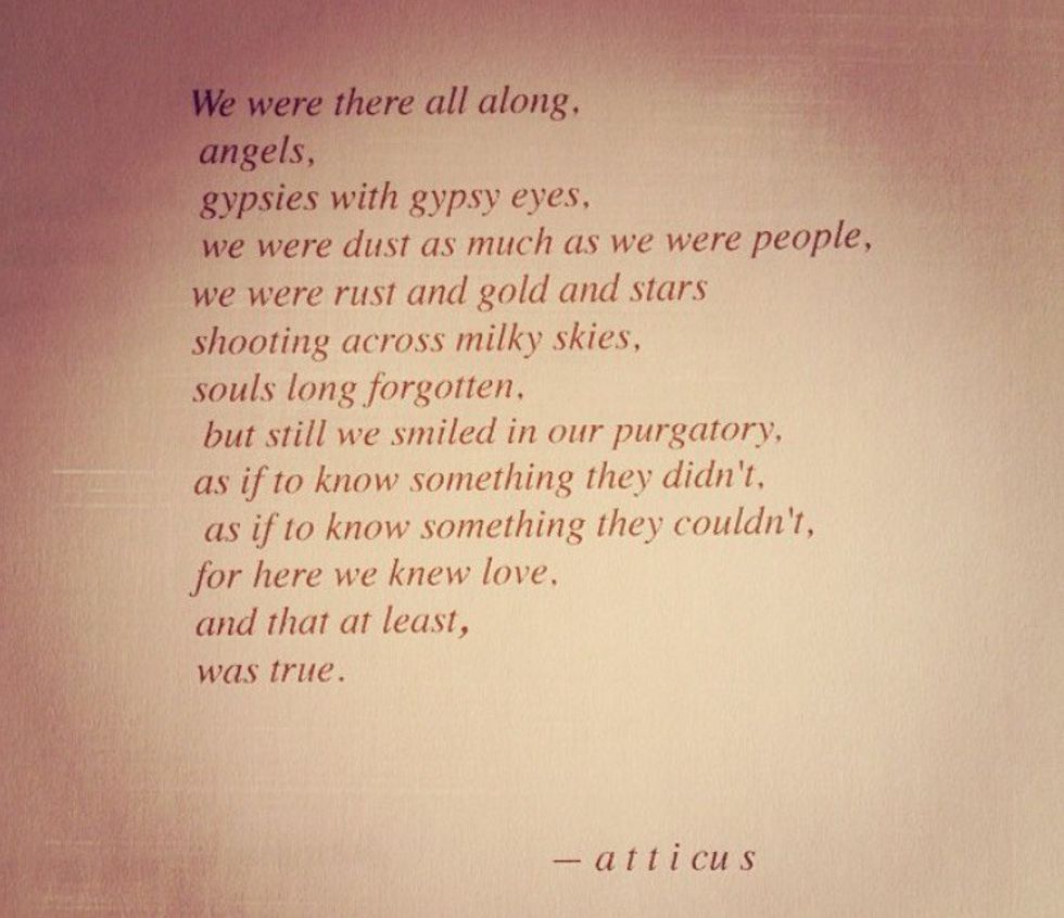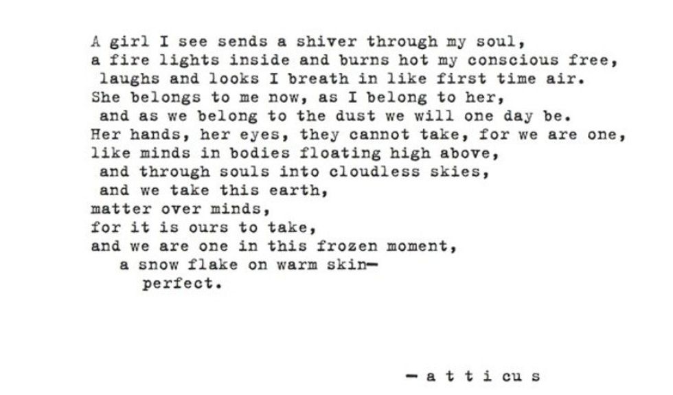 Atticus , a mysterious poet found primarily on social media, has a way of taking his/her followers along for a ride on an emotional rollercoaster. In just a few words, most of which are written in typewriter font in front of a plain white background, we feel the pain, love, and curiosity he/she is feeling. Atticus' work is enough to make your soul feel alive or at least it is for me. It has been shared and followed by over 100 thousand people including Karlie Kloss and the Kardashians. Atticus' poetry has a way of making us feel alive, alone, broken hearted and in love. And though no one really knows who the author truly is, isn't this the point of writing, to make your readers' emotions come to life?