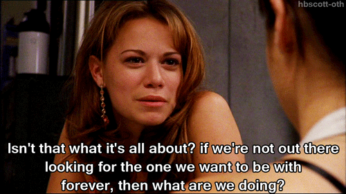 37. Haley: "Yeah well, I guess I can’t really help it if I found the guy I wanna be with my first time out. Isn’t that what it’s all about? Maybe if we’re not out there looking for the one we wanna be with forever then what are we doing?”