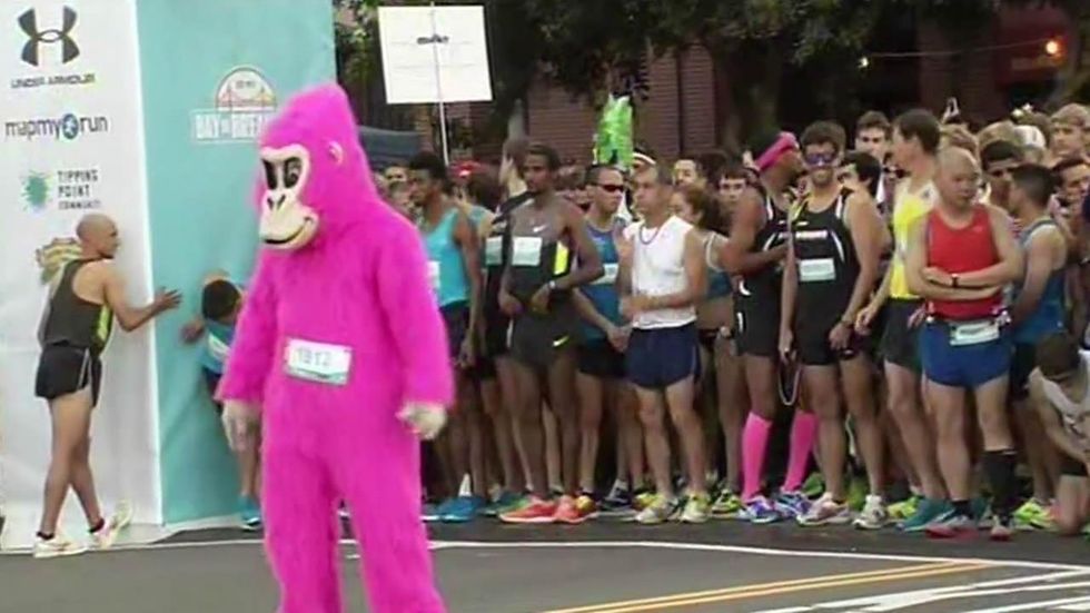 - I mean seriously is pink gorilla guy going to keep that on the whole time??