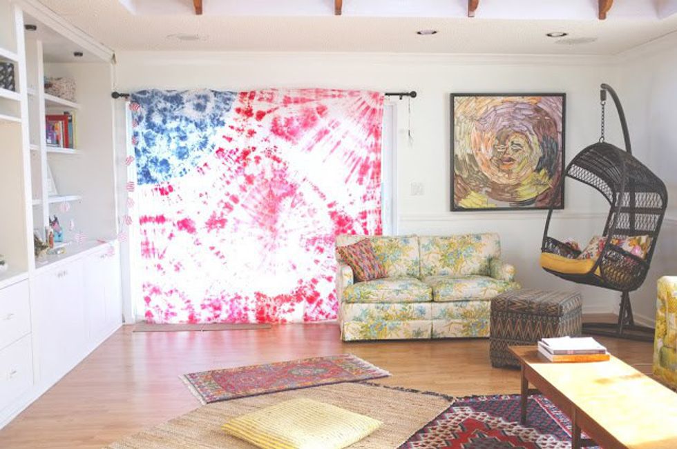 1. Here is a easy to make photo wall or tablecloth! The only things you will need are a white sheet and red and blue tie die materials, including rubber bands. In order to make the perfect photo wall try adding a USA banner or a few streamers.