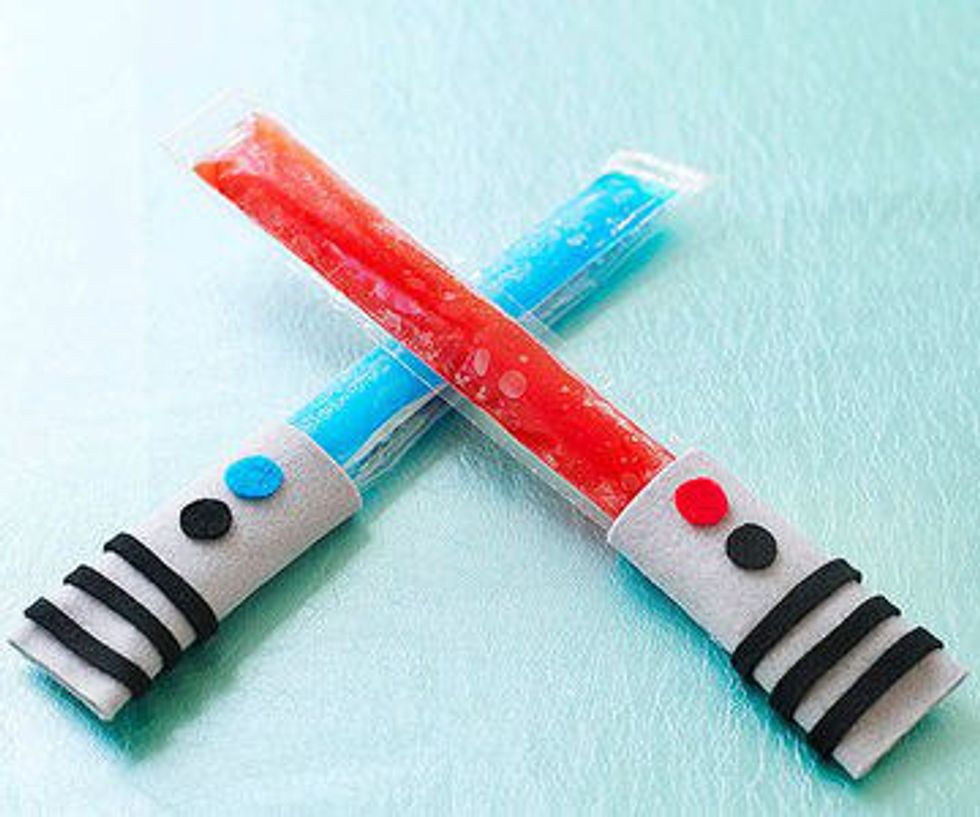5. Look at these cute little popsicles! I mean who wouldn't want these cuties at their party? With a few pieces of felt you can make the coolest lightsaber popsicles I've ever seen.